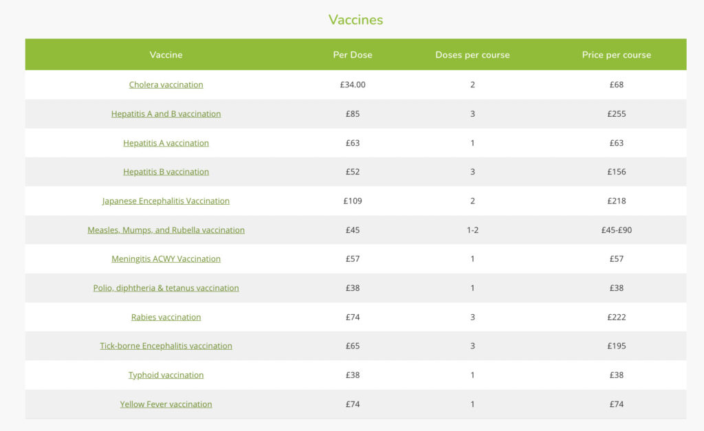 A: Depends on your destination. Book a travel health consultation 8-12 weeks before departure. Budget £200-800 for paid vaccines.